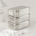Alle tre boksene er laget av rustfritt stål 18/8 i høy kvalitet, helt fri for skadelige kjemikalier og engangsemballasje, og leveres i et resirkulerbart GOTS-sertifisert nett. Stålet absorberer kulde, så oppbevar boksene i kjøleskapet før bruk for å holde maten fersk lenger. Boksene tåler oppvaskmaskin, men ikke mikrobølgeovn. De er ikke lekkasjesikre – bruk Bento Rounds til dressinger, yoghurt eller andre flytende matvarer.